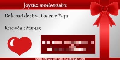 Sur ce site, vous pouvez imprimer, gratuitement et sans inscription, une carte cadeau qui annoncera ce que vous allez offrir.